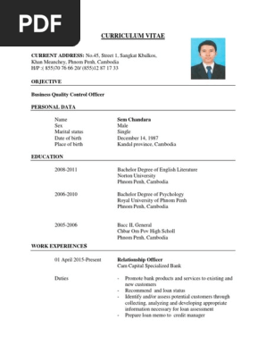 Curriculum vitae sample personal particulars full name: